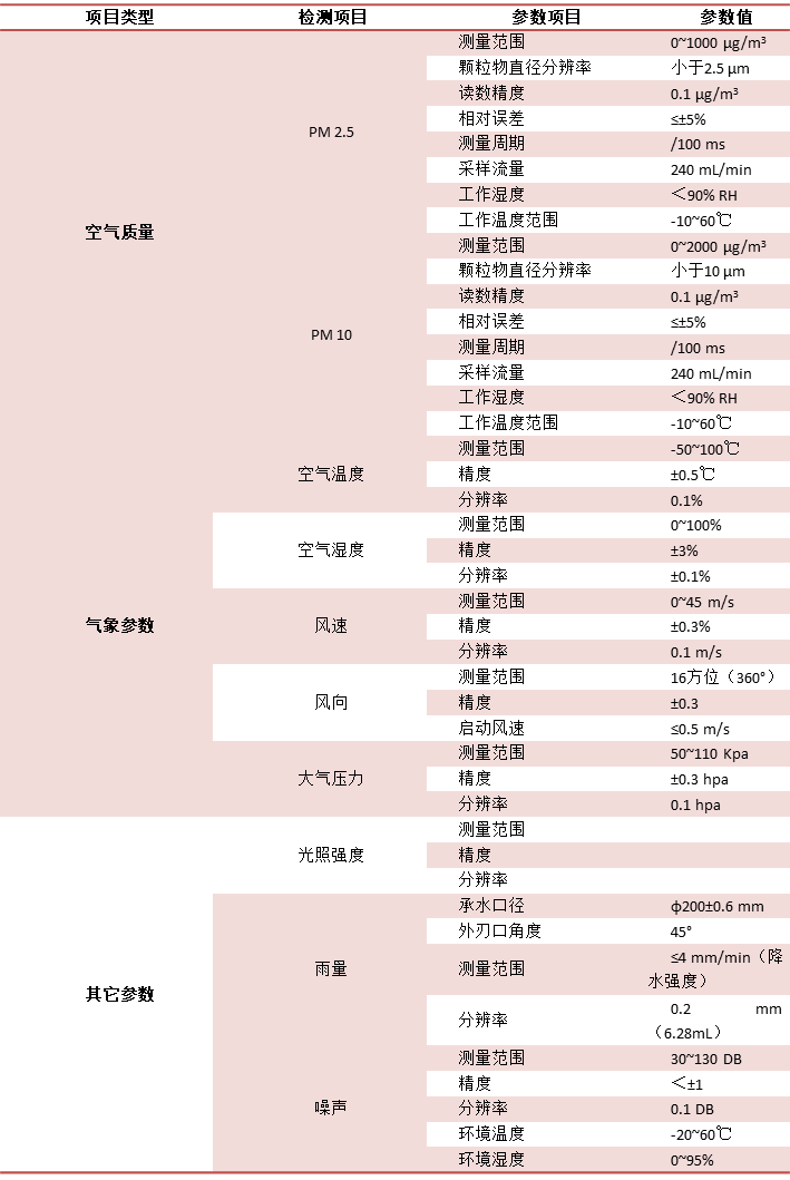 前端在线监测仪器由传感器节点、环境空气质量传感器(检测PM2.5/PM10/TSP、温湿度、风力风向、噪音等)以及A/D转换、数据接口等单元组成,负责自动采样、自动监测区域所部署的传感器节点、监测每点的数据。