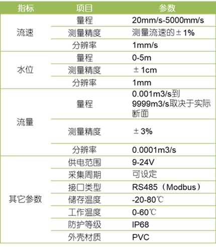 本产品是一款雷达式测流产品,采用多普勒雷达测速原理,对水流的表面流速进行探测,微波雷达不受温度梯度、压力、空气密度、风或其他气象环境条件的影响,可全天候全天时稳定工作。同时,雷达可以设置不同发射频率,在多点近距离探测时,可有效地避免相邻产品的雷达波束互扰影响。另外,监测系统或单位可根据探测获得的速度值(多点测量),加之河道断面几何形状信息等,对天然河流/城市河流、渠/涵/管道剖面水流量进行测定。
